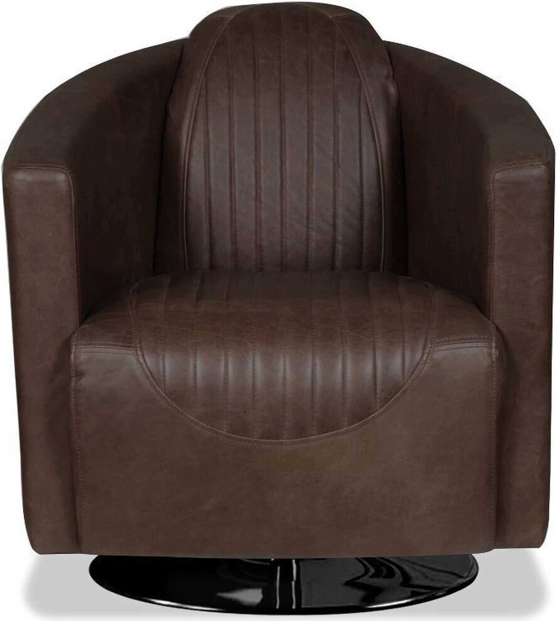 The classic accent chair is covered in a super-soft polyester microfiber blend made to mimic the look of top grain leather. Durable match stitching ensures the vertical accent channels retain the design appeal over years of use. The swivel base, ribbed seating, and extra firm fill. a must-have for the aviation enthusiast.