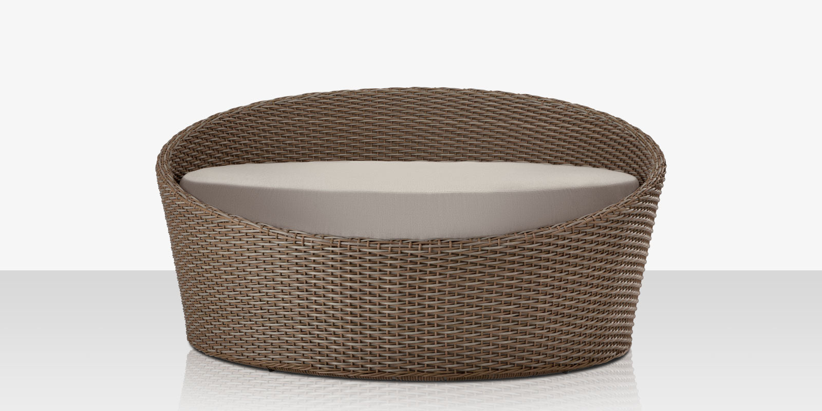 Meet The Moon Daybed, perfect for outdoor seating and relaxation that features durable, flexible, and stylish design. Constructed using a fully-welded aluminum extrusion that is powder coated and wrapped in The proprietary Duraweave fiber.